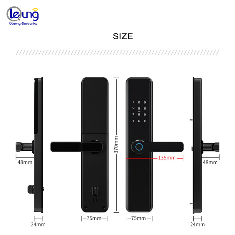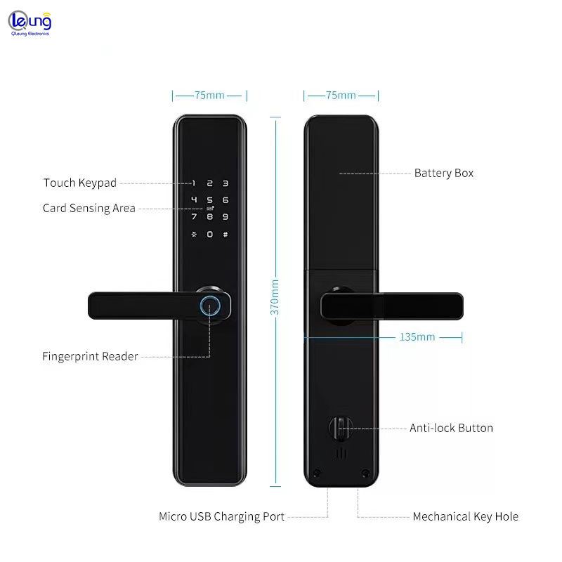 | Ketebalan pintu: | 38-100mm | Buka Kunci Metode: | Aplikasi Tuya Wifi/TT Lock App & Password & Sidik Jari & Kartu & Kunci & USBPORT |