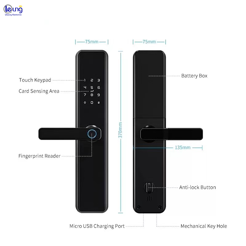 | Metode Membuka | Tuya WiFi app / TTlock app, Kata sandi, sidik jari, Kartu, Kunci, port USB |