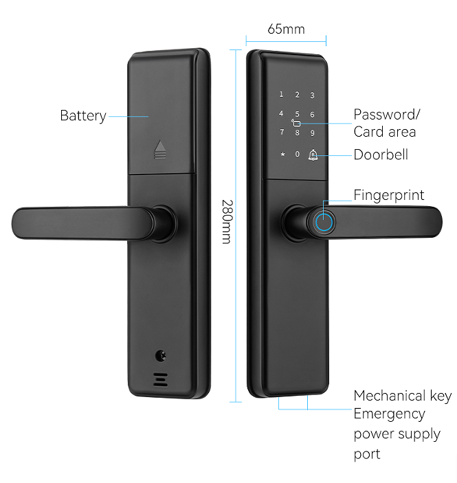 | Buka Kunci Cara: | Aplikasi wifi Tuya/aplikasi TTlock & Kata Sandi & Sidik Jari & kartu & kunci | Aplikasi: | Tuya Cerdas / Kunci TT |