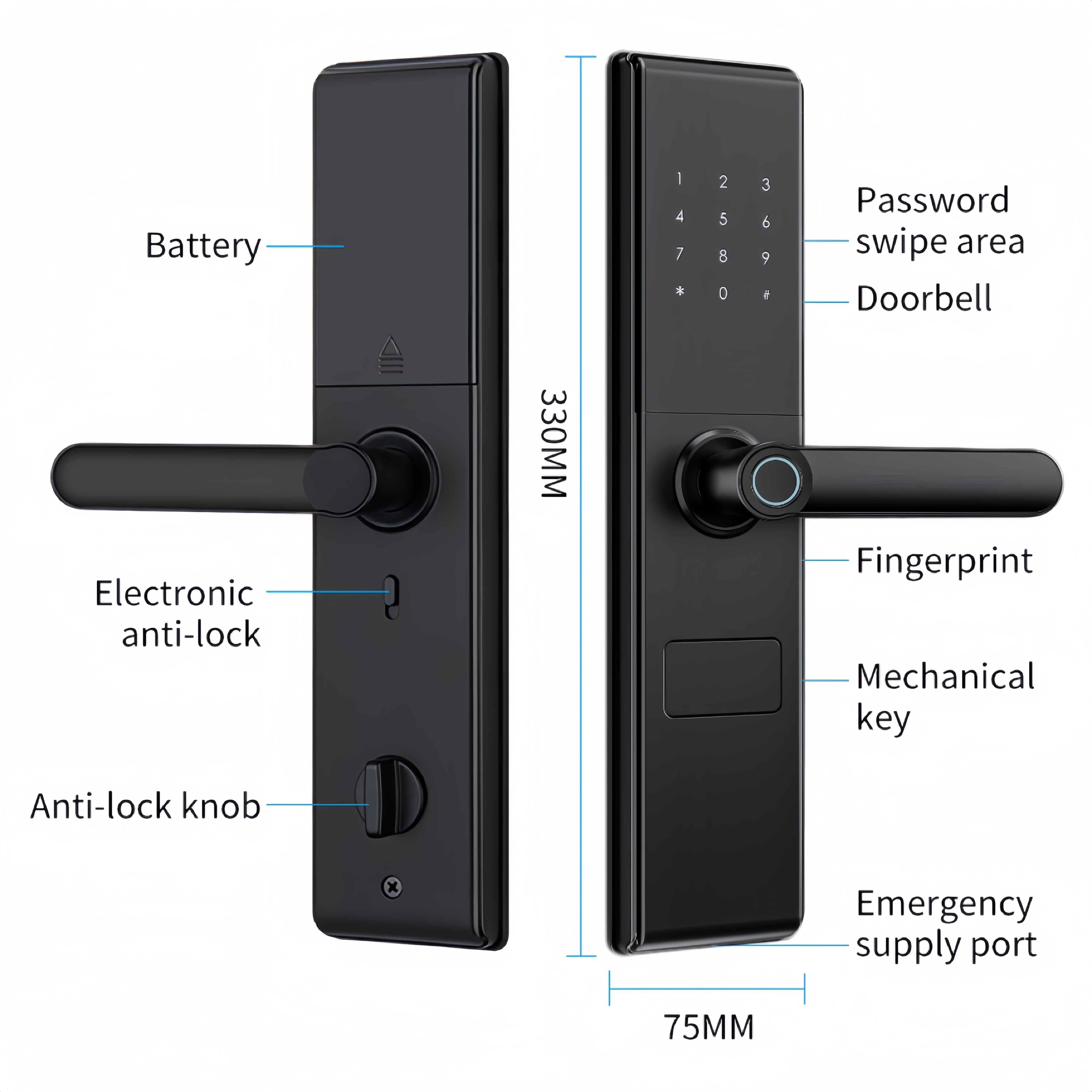 *Struktur yang aman dan stabil Desain kata sandi anti-peep, data terenkripsi, dan badan paduan padat untuk perlindungan rumah yang andal.