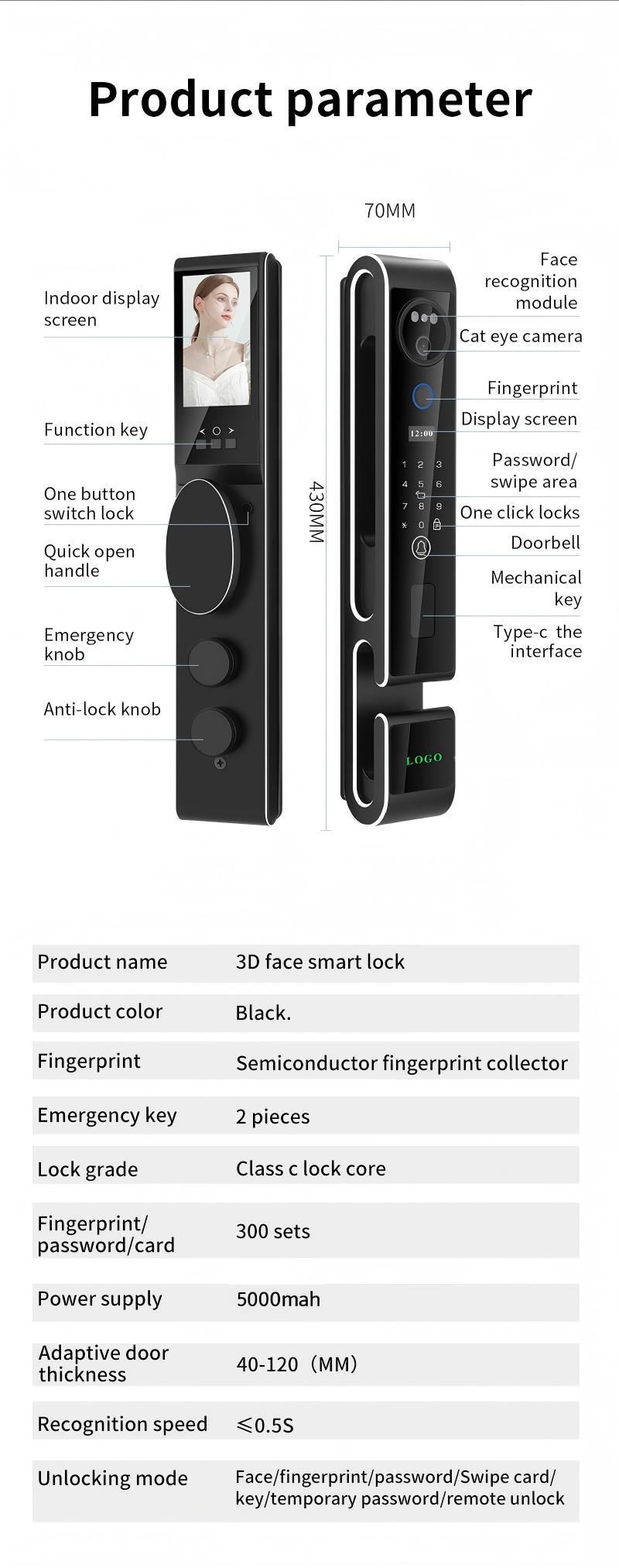 Kunci Pintu Tuya Otomatis Penuh 3D QL-S666 Kunci Pintu Rumah Pintar
