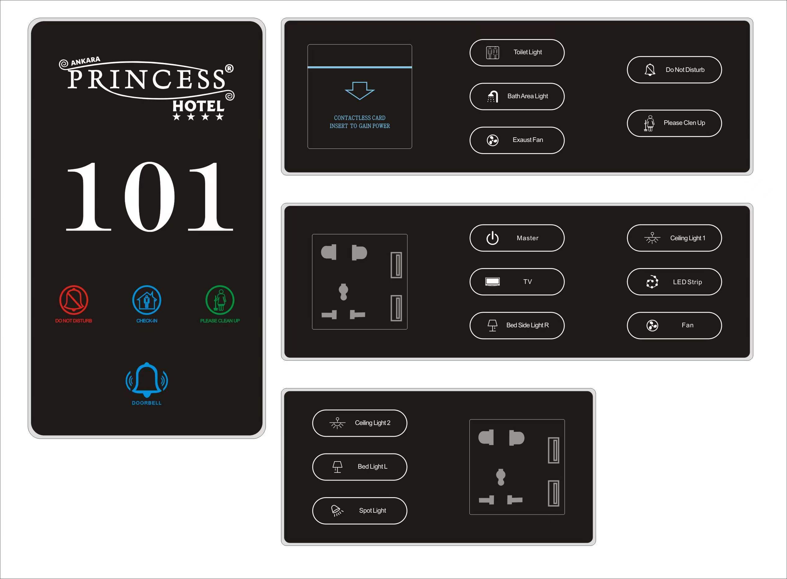 | Fungsi | DND, check in, tolong bersihkan, dll. |